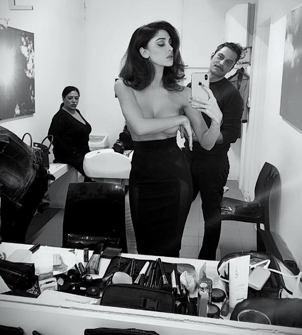 Bëhet fjalë për një foto që e shfaq atë topless në një dhomë me ndihmësit e saj, teksa hiret e saj i mbulon me parakrahun./a.ç