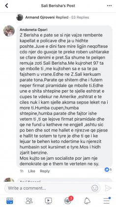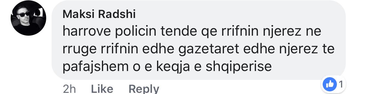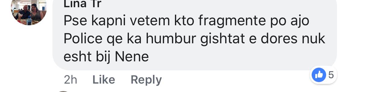 Komentet jane te pafundme kunder doktorit edhe kur vjen fjala per 24 vjecaren, efektiven Ina Muka e cila humbi gishtat nga kapsollat e protestuesve duke i kujtuar se eshte bije nene. Ka nder ta edhe te djathte qe i thone Berishes se policia ishte teresisht ne rregull me sjelljen e saj. Me poshte po ju sjellim disa nga komentet qe tregojne perceptimin qytetar per ngjarjet e sotme: LEXO.COM.AL