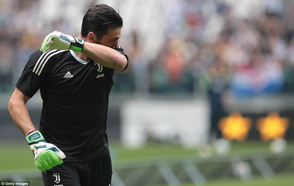 Për t’ja lehtësuar disi barrën e lamtumirës së dhimbshme, Max Allegri vendosi që të zëvendësojë në minutën e 63-të. Me kokën ulur për të mos treguar sytë e përlotur dhe me duart lartë duke falenderuar tifozët, Gigi iu drejtua stolit.