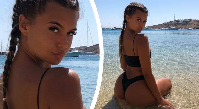 Sofia ka treguar të pasmet e saj bombastike, teksa ka pozuar e ulur pranë detit