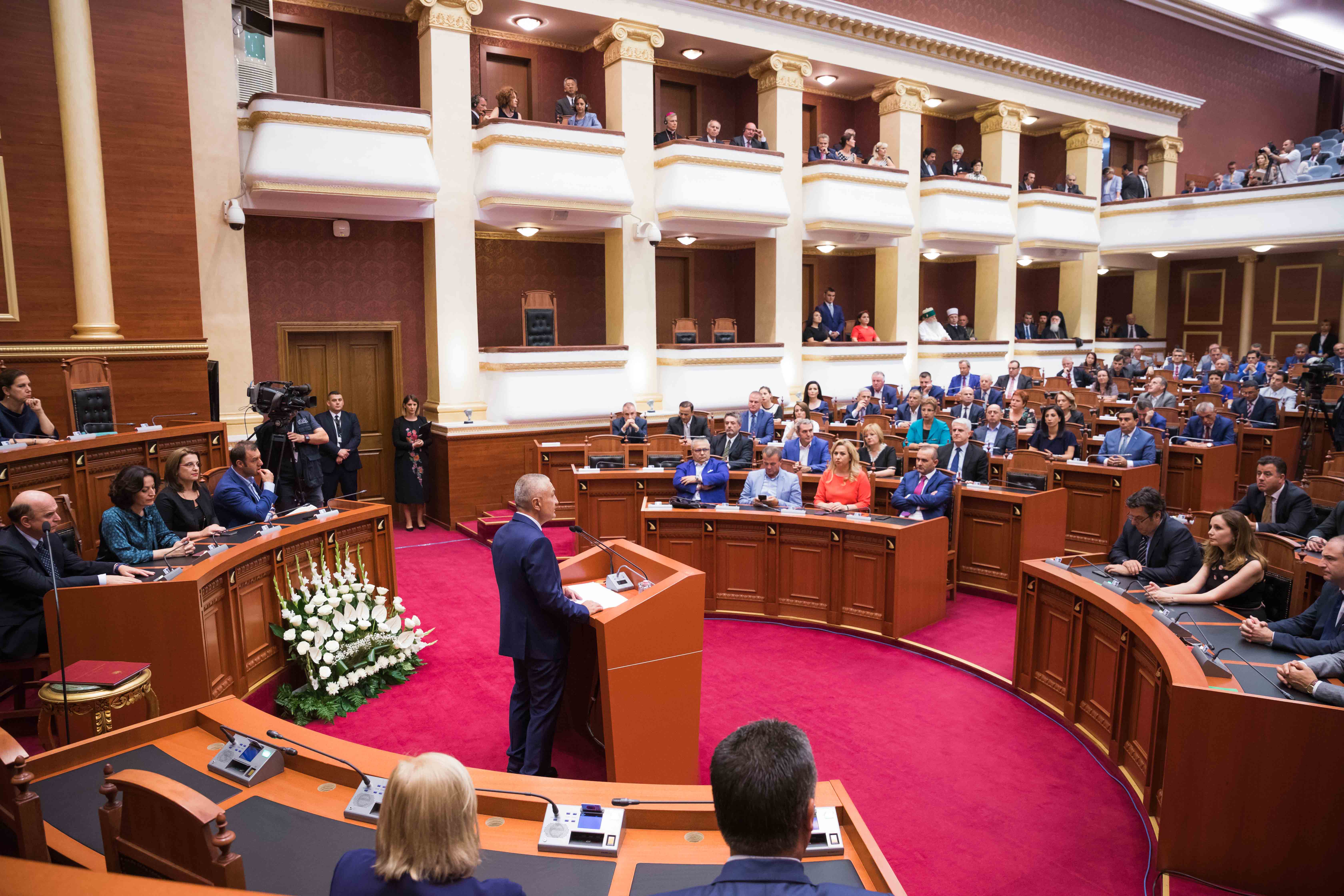 Në ceremoninë zyrtare në parlament merrnin pjesë një numër i madh personalitetesh ashtu siç është bërë zakon, që nga ambasadorët, tek krerët e drejtësisë por edhe familja e Presidentit të ri, Ilir Meta.