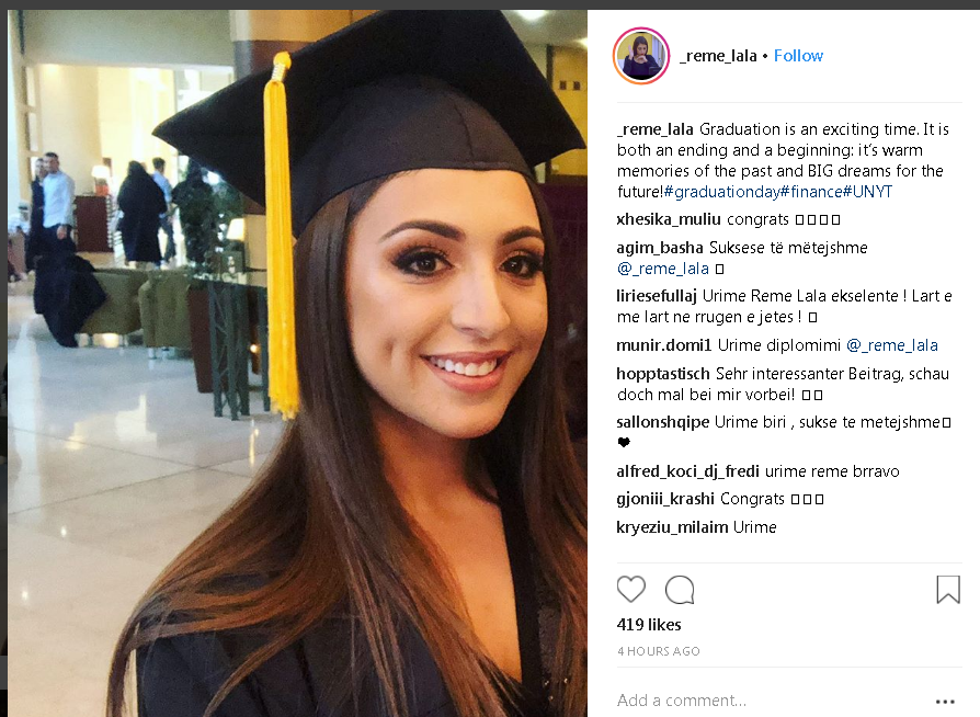 23 vjeçarja njofton se ka marrë diplomën për Financë.