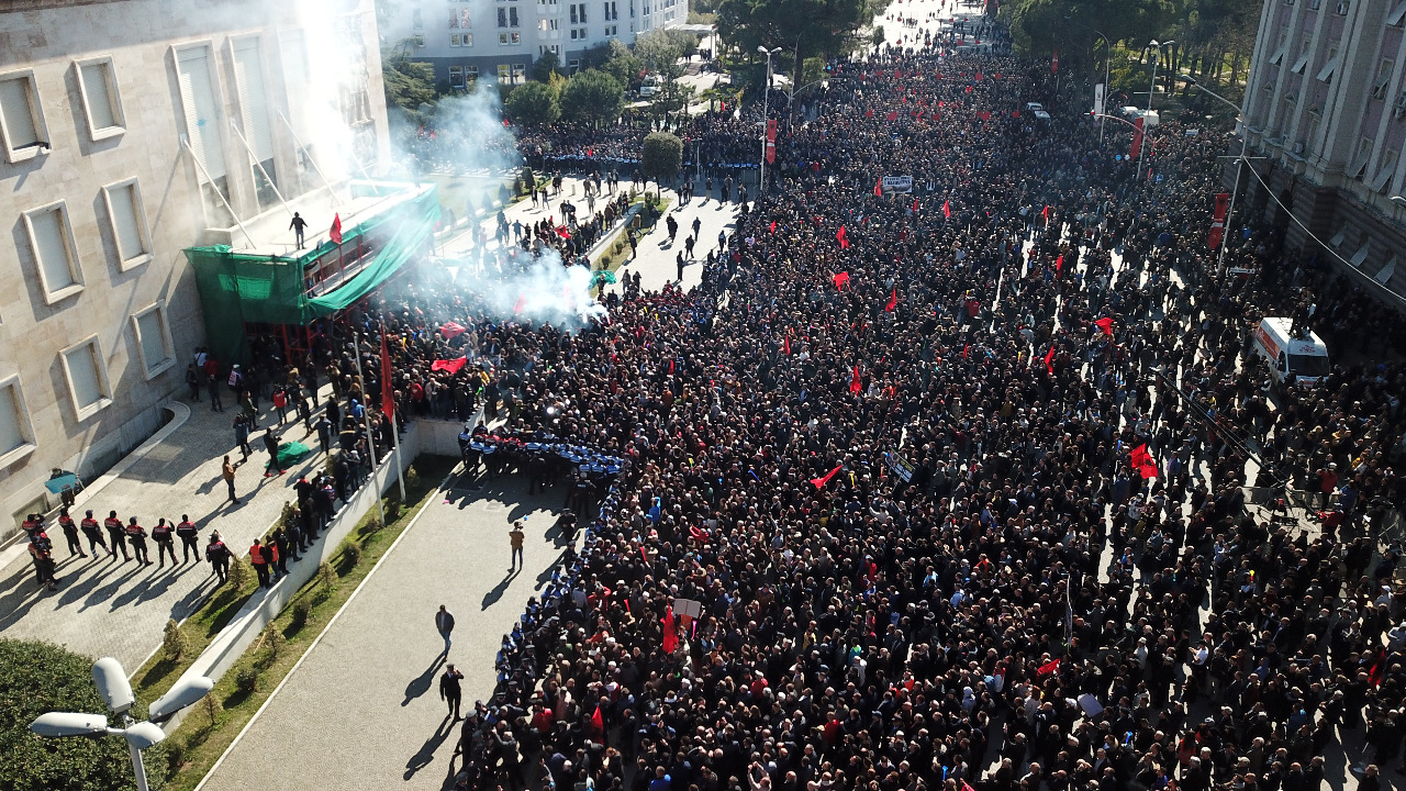 Mijëra protestues të ardhur nga e gjithë Shqipëria shprehën revoltën e tyre ndaj qeverisë ditën e shtunë. Objektivi kryesor i sulmit ishte pikërisht Kryeministria, më saktë dera e saj që u godit me skela, tulla e gurë e madje u tentua t’i vihet flaka. Nga brenda Kryeministrisë, policia iu përgjigj me gaz lotsjellës protestuesve./a.meta/javanews.al