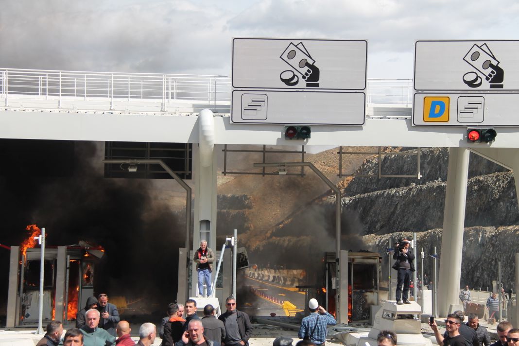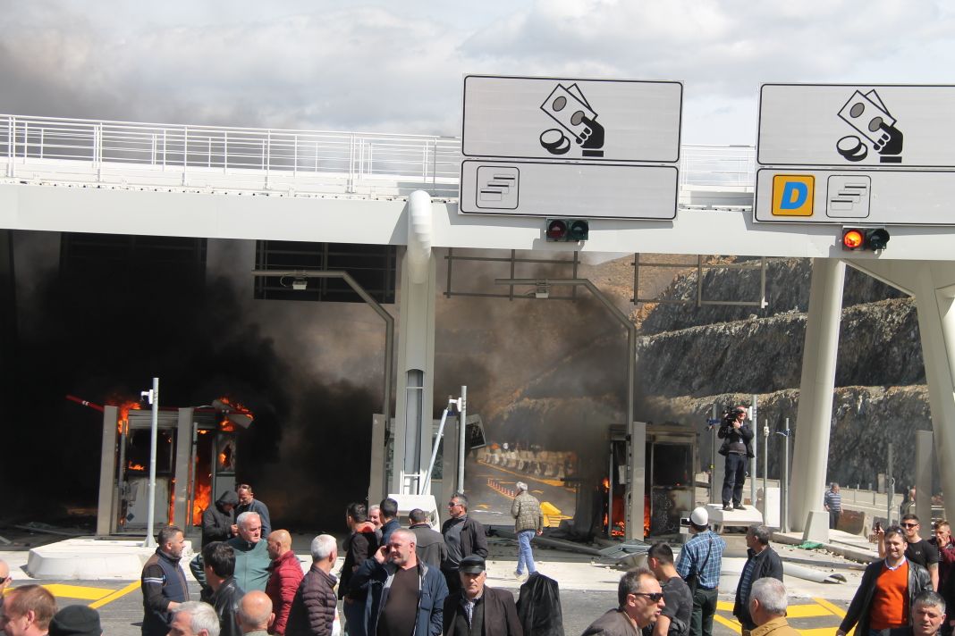 Protestuesit kanë shkatërruar totalisht sportelet e kompanisë ku do të paguhej tarifa e kalimit.