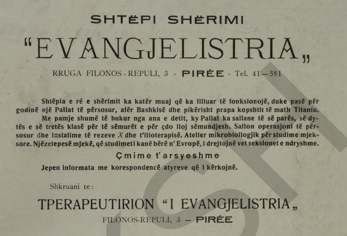 Shtëpi shërimi: “Me pamje të bukur nga ana e detit, ky pallat ka sallane të së parës së dytës dhe së tretës klasë për të sëmurët dhe për çdo lloj sëmundjesh”.