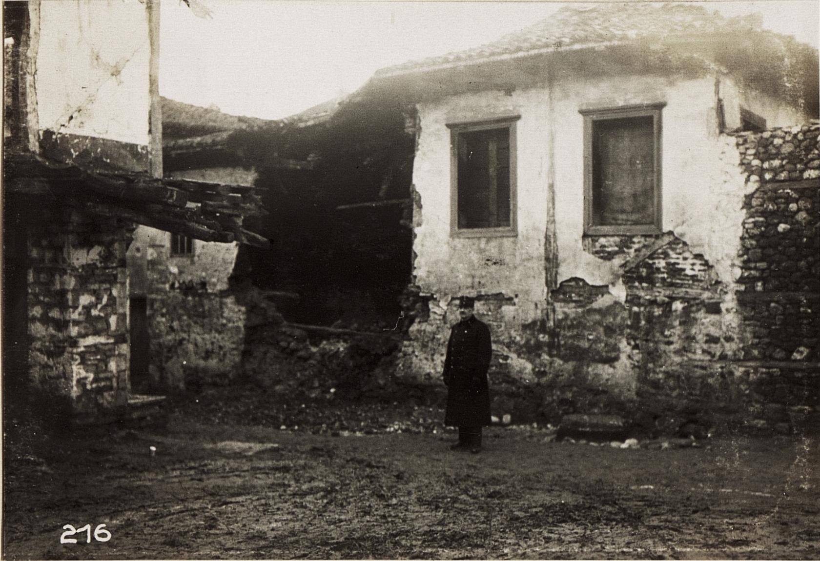 4. Durrës 1917 – Rrënojat e një shtëpie të bombarduar nga sulmet ajrore aleate. Në foto dallohet qartë një ushtar austro-hungarez. Marrë nga arkivat austriake. Armand PLAKA- © Të gjitha të drejtat të rezervuara