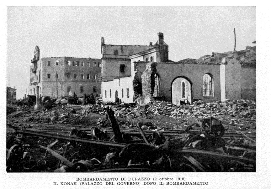 2. Rrënojat e Pallati Mbretëror “Konaku”, në Durrës, goditur nga bombardimet aleate në vitin 1918, paraqitur në botimet italiane të kohës. Armand PLAKA- © Të gjitha të drejtat të rezervuara