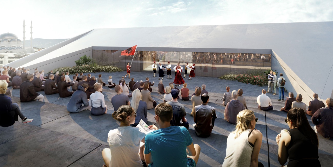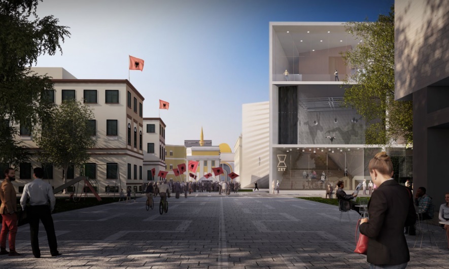 Hyrja kryesore në teatër është e mundur përmes shëtitores “Murat Toptani”, ndërsa hapësira e sheshit publik në nivelin përdhes, siguron hyrje të mbuluar në teatër, së bashku me hapësirën publike për mbledhje, ose argëtim. Godina është organizuar me dy pjesë, ku njëra i është dedikuar tërësisht administratës dhe aktorëve dhe pjesa tjetër publikut. Të dyja pjesët duket se ndërveprojnë mes tyre nëpërmjet sallës së madhe të teatrit si dhe dy sallave Black Box që janë kushtuar shfaqjeve. Duke krijuar një tryptikë të vendtakimeve, bëhet e mundur që mekanizmi përpara godinës të jetë shumë i thjeshtuar. Godina është parashikuar si një makinë efikase, por poetike e teatrit. Të gjitha programet janë vendosur në mënyrë optimale në aspektin e funksionalitetit, ndërsa krijojnë një përvojë spektakolare për spektatorët në teatër.