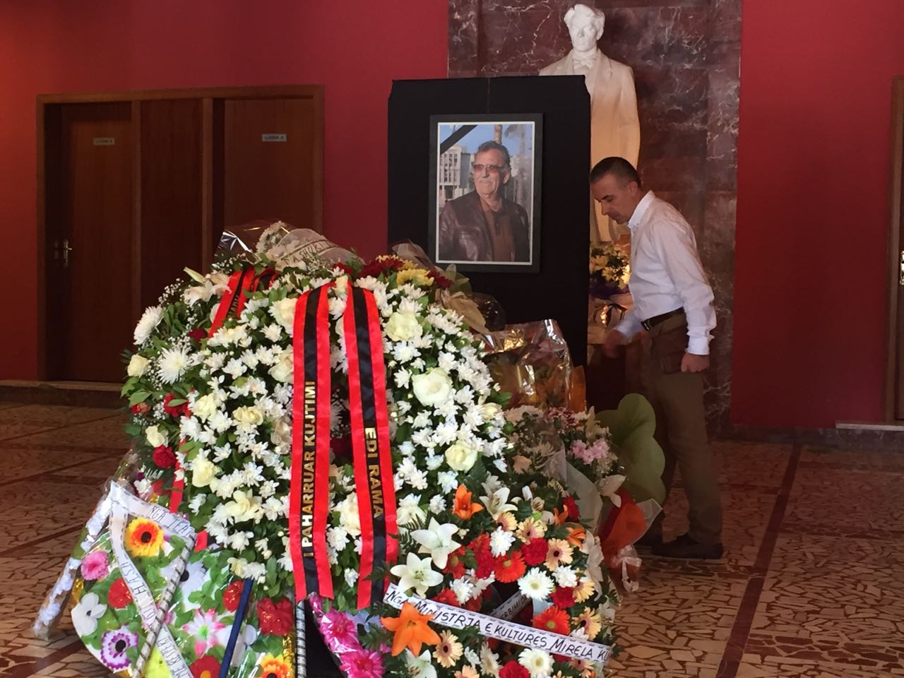 Të afërm, kolegë, miq e perosnaitete nga fusha të ndryshme po i japin nderimet e fundit artistit të madh.