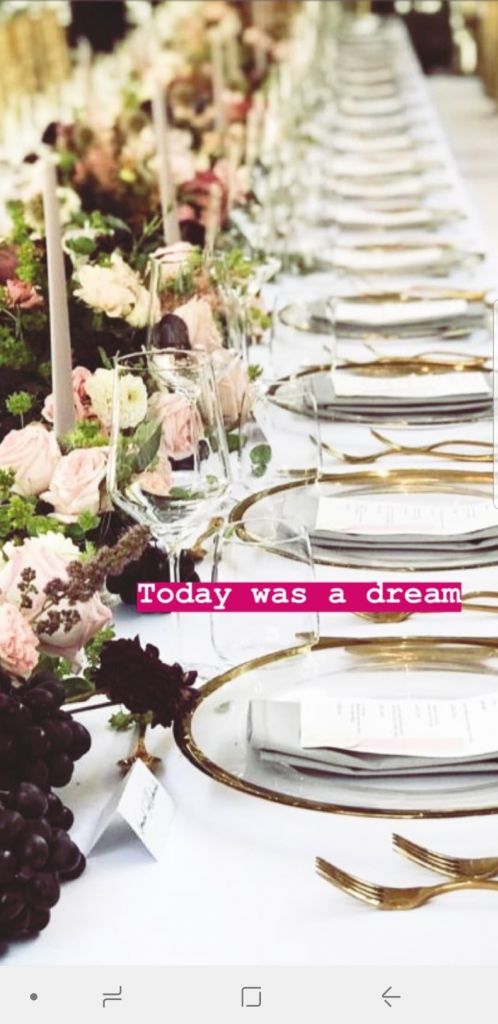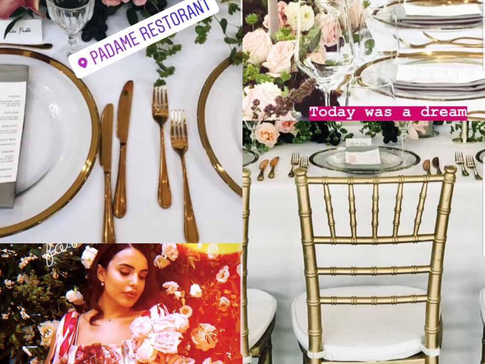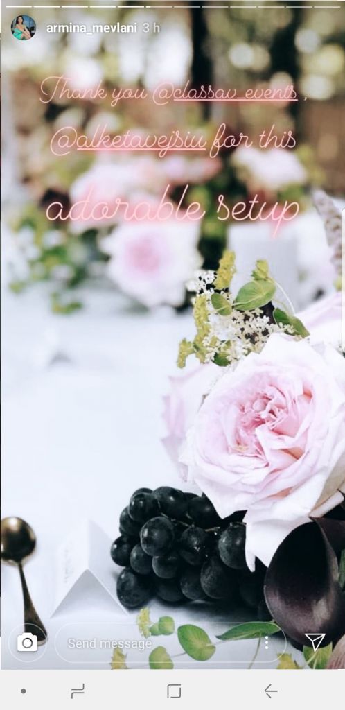 Ata kanë mbledhur familjet dhe miqtë e tyre më të ngushtë në një ceremoni luksoze ku bie në sy dekori me thika dhe pirunj të ngjyer në ar. Më herët çifti ka festuar edhe në Komo të Italisë, kur Shkëlzeni i propozoi martesë Arminës. Ceremonia u mbajt një ditë para ditëlindjes së ish-kryeministrit Berisha i cili duket mjaft entuziast për patneren e re të djalit të tij.