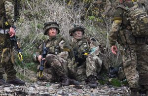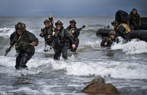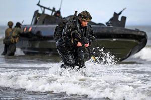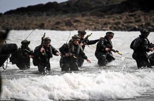 Marina Mbretërore britanike u fotografua gjatë zbarkimit në brigjet skoceze, në një rreshtim luftarak. Përgatitja e përdyvitshme e NATO-s do të zhvillohet nga 21 prilli më 4 maj dhe përfshin ndër të tjera forca nga SHBA-të, Spanja, Danimarka, Estonia, Letonia, Lituania dhe Holanda. ma.me