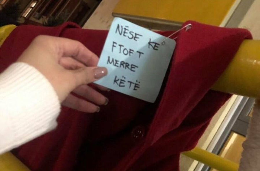 ‘Nëse ke ftohtë merre këtë’ shkruhet në shënimin e vendosur mbi palltot dhe xhupat.