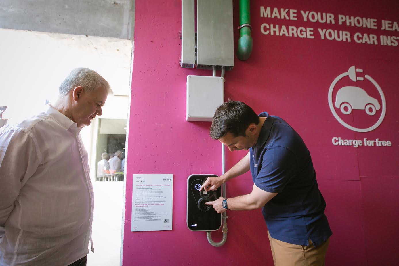 Për herë të parë në Shqipëri, në parkingun nëntokësor të sheshit është vendosur një sistem i posaçëm për karikimin e automjeteve që funksionojnë me energji elektrike, duke e renditur Tiranën mes qyteteve më të zhvilluara që aplikojnë një projekt të tillë. “Është një risi që po e programojmë. Ky është parkimi i parë nëntokësor në Tiranë, por edhe parkimi i parë nëntokësor me karikim elektrik. Edhe parkingu nëntokësor te Bulevardi i Ri do të ketë vende të posaçme për makina elektrike. Flota më e madhe e makinave elektrike momentalisht është e Policisë së Shtetit, por do të shtohet edhe me flotën e bashkisë. Ka rreth 70-80 qytetarë që tashmë kanë makina elektrike dhe kemi menduar që ta kapim menjëherë teknologjinë me të cilën po ecën bota sot”, tha ai duke shtuar se kjo nismë është një hap cilësor teknologjik, duke e pajisur qytetin shumë shpejt edhe me një rrjet për karikimin e makinave elektrike.