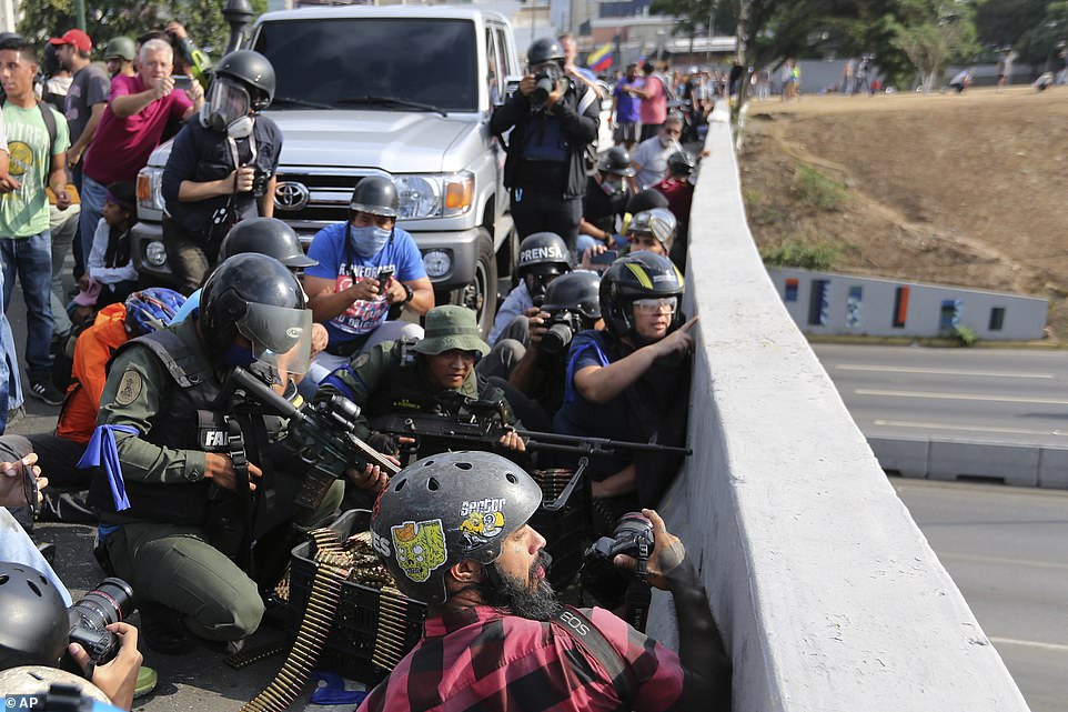 Ushtarët e presidentit Maduro, ndërkohë, duken të vendosur në pozicione luftimi, nëpër ura e me armë të rënda. Gazetarët në terren raportojnë se po dëgjohen të shtëna nga të gjitha anët.