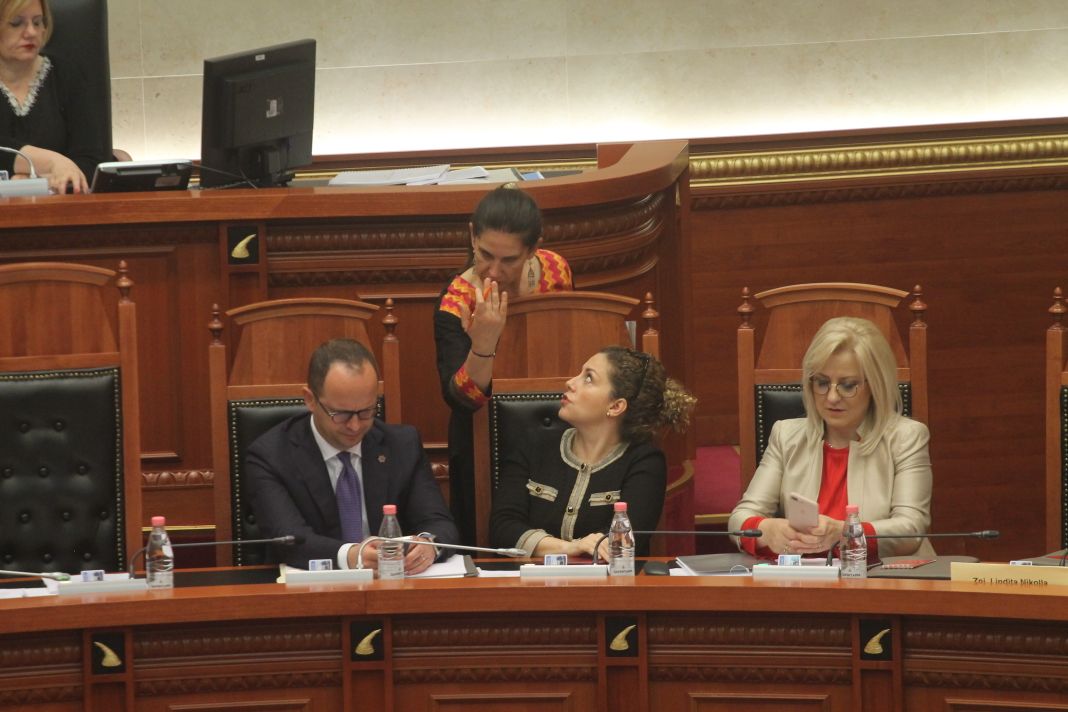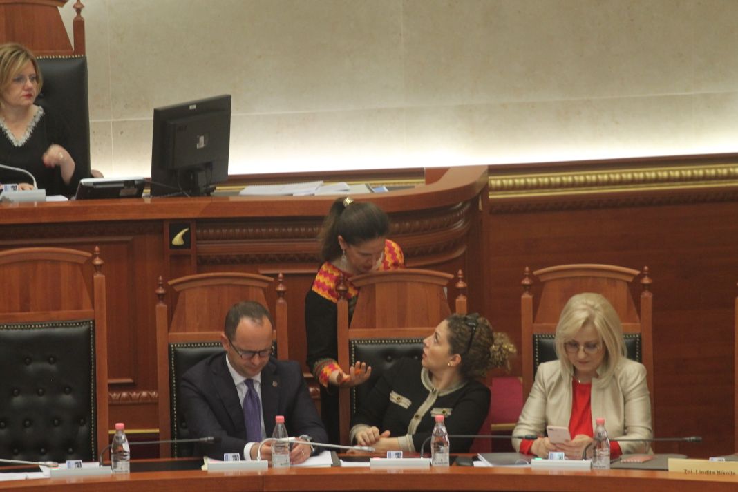 Teksa në sallën e seancave plenare parlamenti vijonte punbimet, në Kryesinë e Kuvendit doli në një deklaratë të beftë për mediat ish-ministri Saimir Tahiri.
