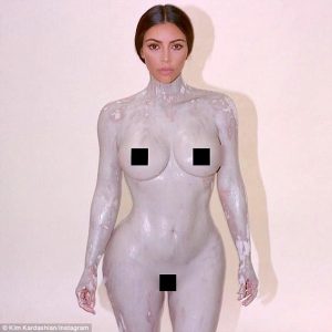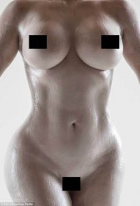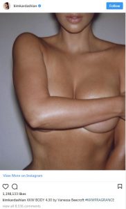Para pak orësh ajo publikoi një foto të gjoksit bombastik të cilin e mbulonte me krahë, Kin nuk ngurroi më pas të pozonte tërësisht nudo. /a.ç
