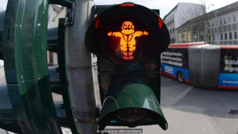 Dritat e trafikut në qendër të Trier shfaqin figura të Karl Marksit.