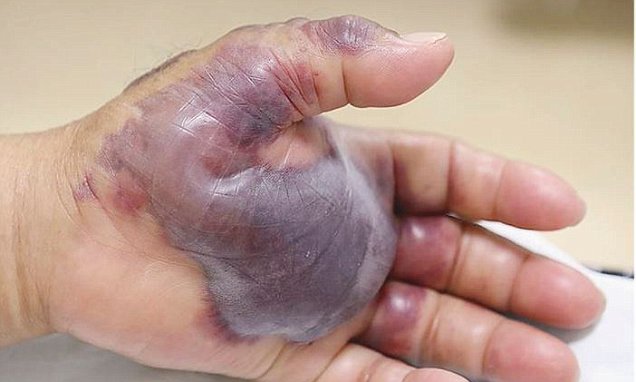 12 orë pasi konsumoi peshkun, dora e tij e majtë shtoi një masë të çuditshme në ngjyrë lejla.
