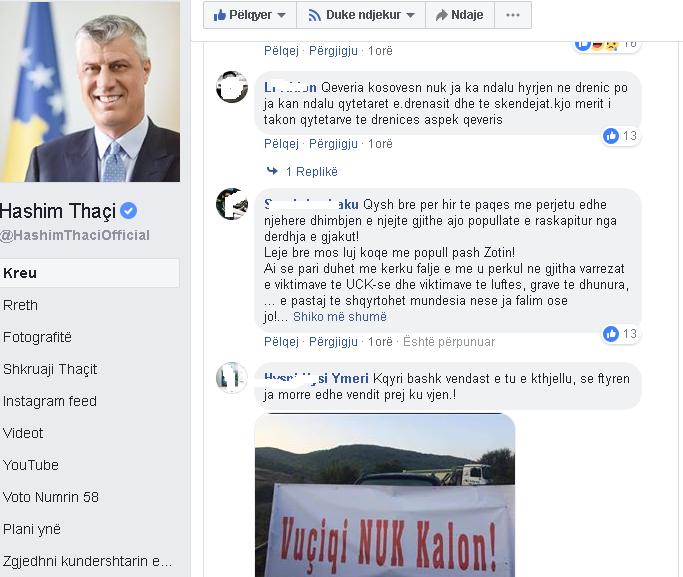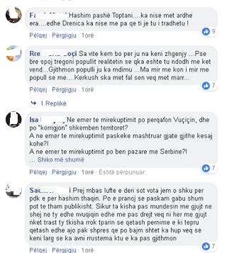 Ata me anë të komenteve i kanë bërë të qartë Thaçit se Vuçiçi nuk kalon dhe e kanë shpallur Thaçin tradhëtar si Esat Pashë Toptani/a.ç