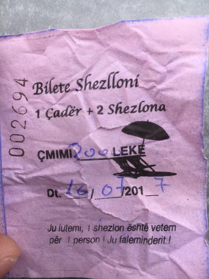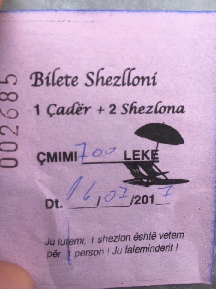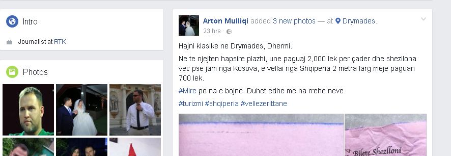 “Në të njëjtën hapsirë plazhi, unë paguaj 2,000 lek për çadër dhe shezllona vec pse jam nga Kosova, e vëllai nga Shqipëria 2 metra larg meje paguan 700 lek,” shkruan ai teksa i bashkangjit tekstit dhe foto të këtij skandali.