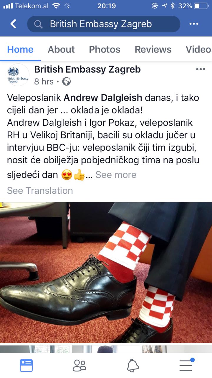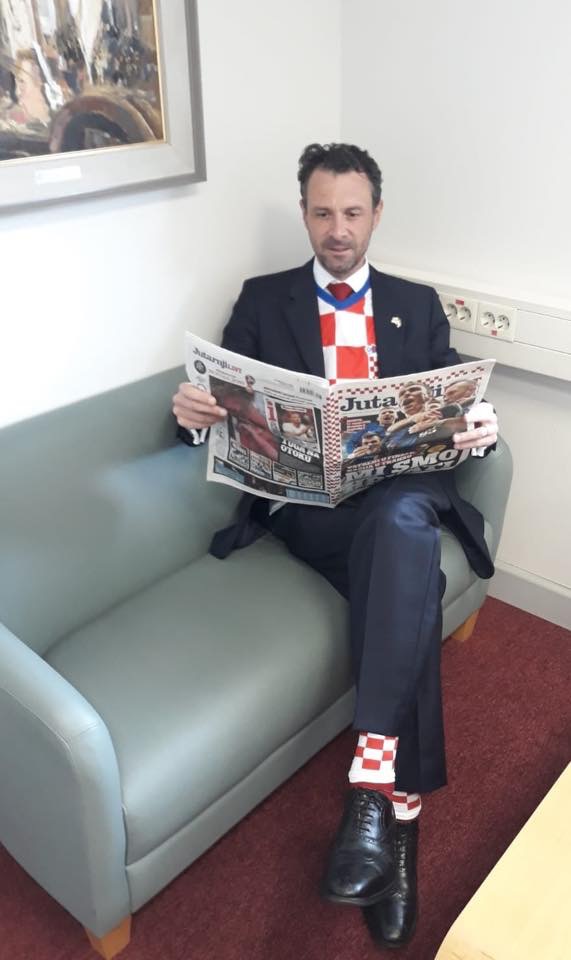 Dhe fituese doli Kroacia. Kështu, pas humbjes, ambasadori anglez në Kroaci u vesh me ngjyrat e kombëtares ballkanase.