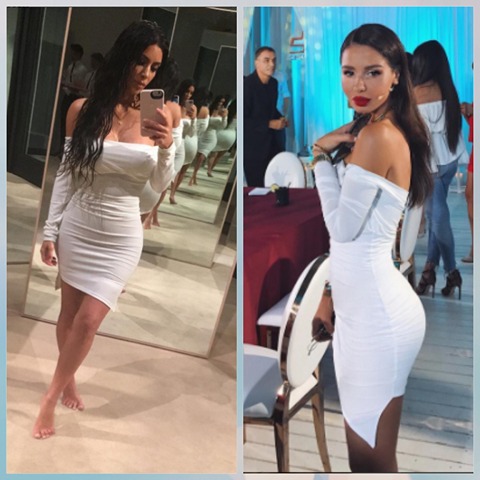 Teksa Kim ka postuar në Instagram një foto nga shtëpia e saj me fustan të bardhë, Aurela Hoxha është paraqitur 2 orë më vonë, në emisionin e Arian Canit me një njëjtin fustan si i Kimit.