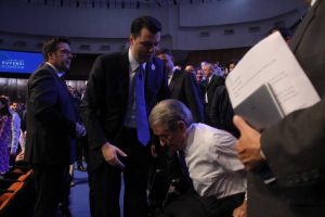 Sali Berisha prej kohësh është shndërruar në një prej njerëzve më besnik të kryedemokratit Lulzim Basha duke konfirmuar çdo vendim që ai merr. Kjo është parë edhe sot gjatë Kuvendit të PD-së ku ata kanë shkëmbyer përqafime të forta. Ndërkohë, është parë edhe “kritiku” Eduard Selami i cili është përpjekur të bjerë në sy të liderit historik. Më poshtë po përcjellim disa prej fotove më pikante.
