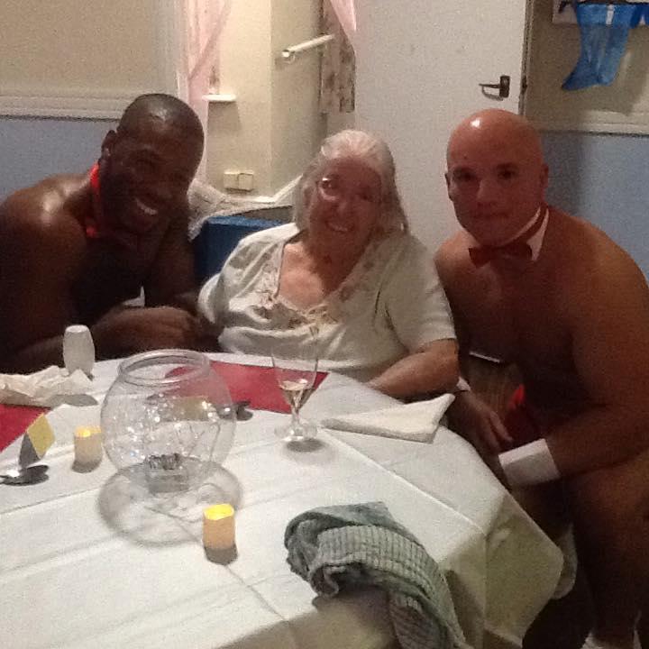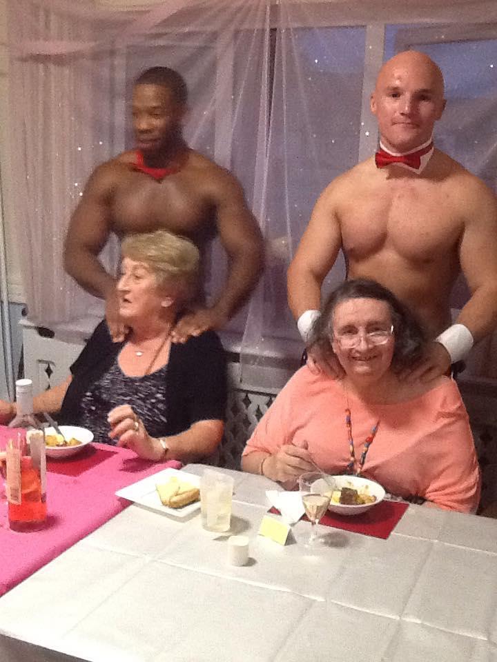 Përparëse dhe papijon mbi muskujt e dukshëm, nuk është një festë beqarie por është darka pikante që kanë marrë 11 gjyshe në një qendër pritëse në Essex, në Britaninë e Madhe. Ideja erdhi nga një prej mysafirëve të “Milton Lodge”, Shtëpia e pensionistëve në Colchester, Joan Corp, 89 vjeçe.