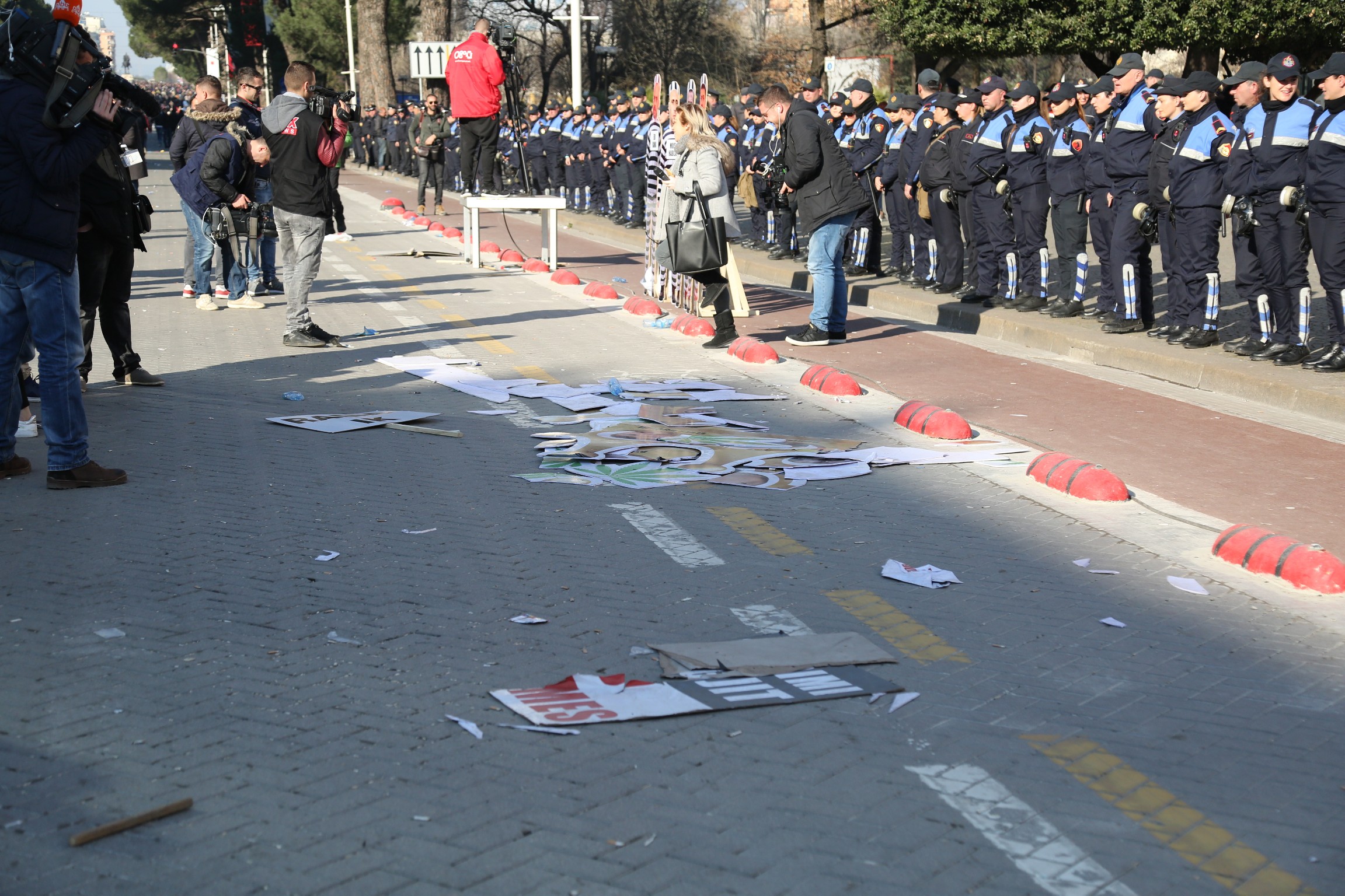 Por ajo që binte në sy ishte edhe flamuri i Bashkimit Europian i hedhur në tokë nga protestuesit. Ditët e fundit ka pasur edhe një tensionim të deklaratave të drejtuesve të opozitës ndaj përfaqësuesve diplomatikë të vendeve anëtare të BE në vendin tonë lidhur me mbështetjen që ata kanë dhënë për procesin e reformës në drejtësi.