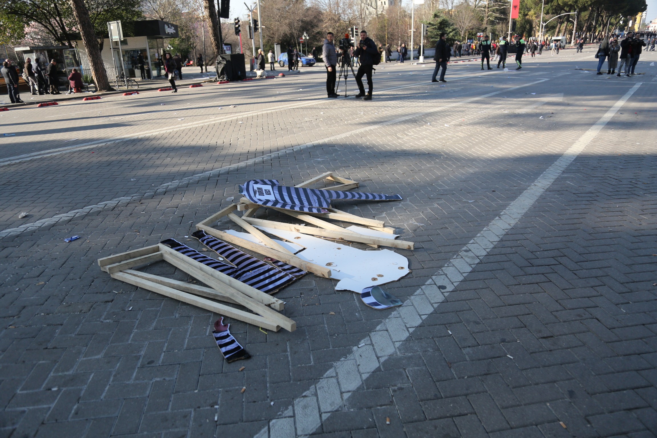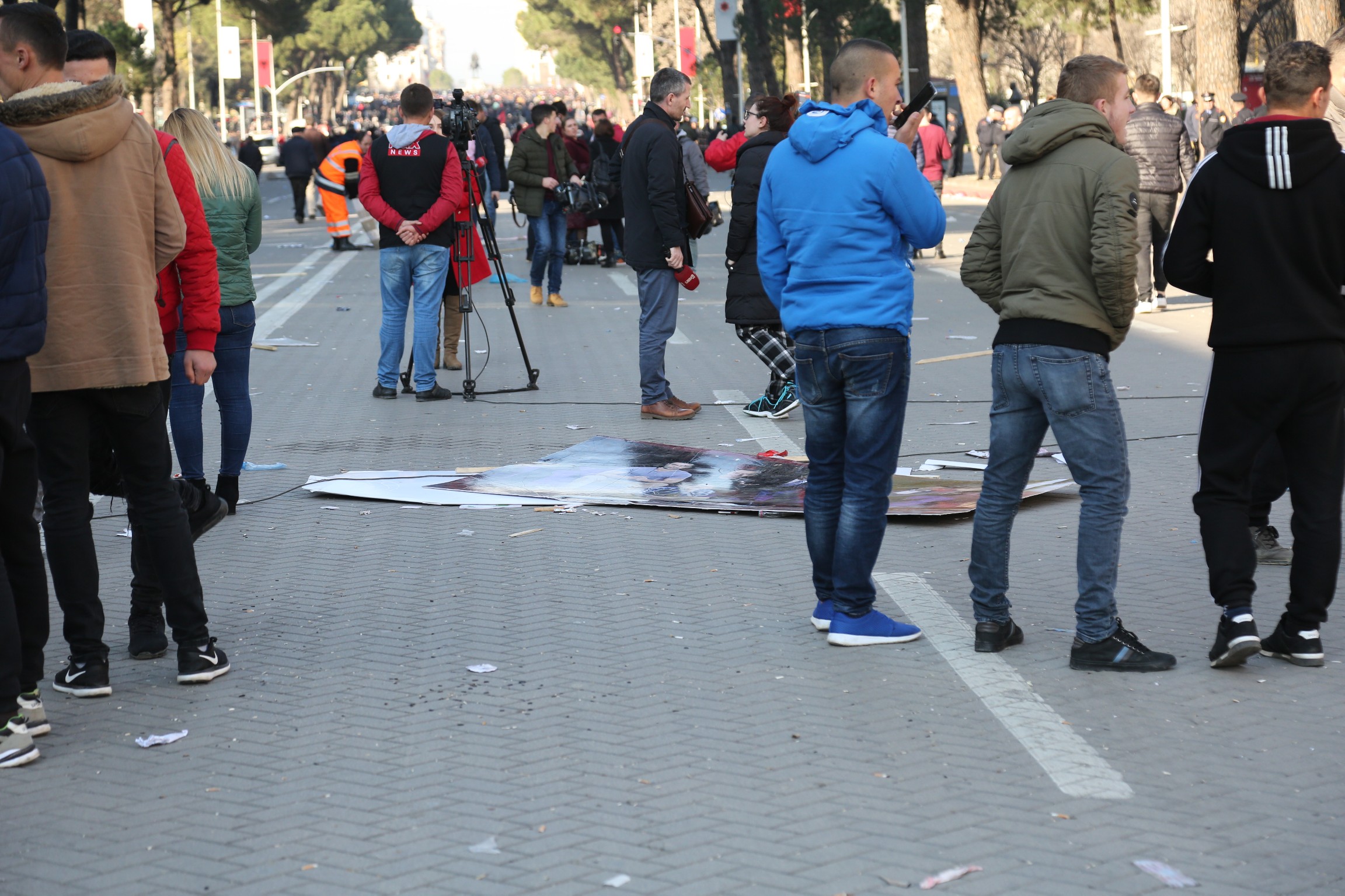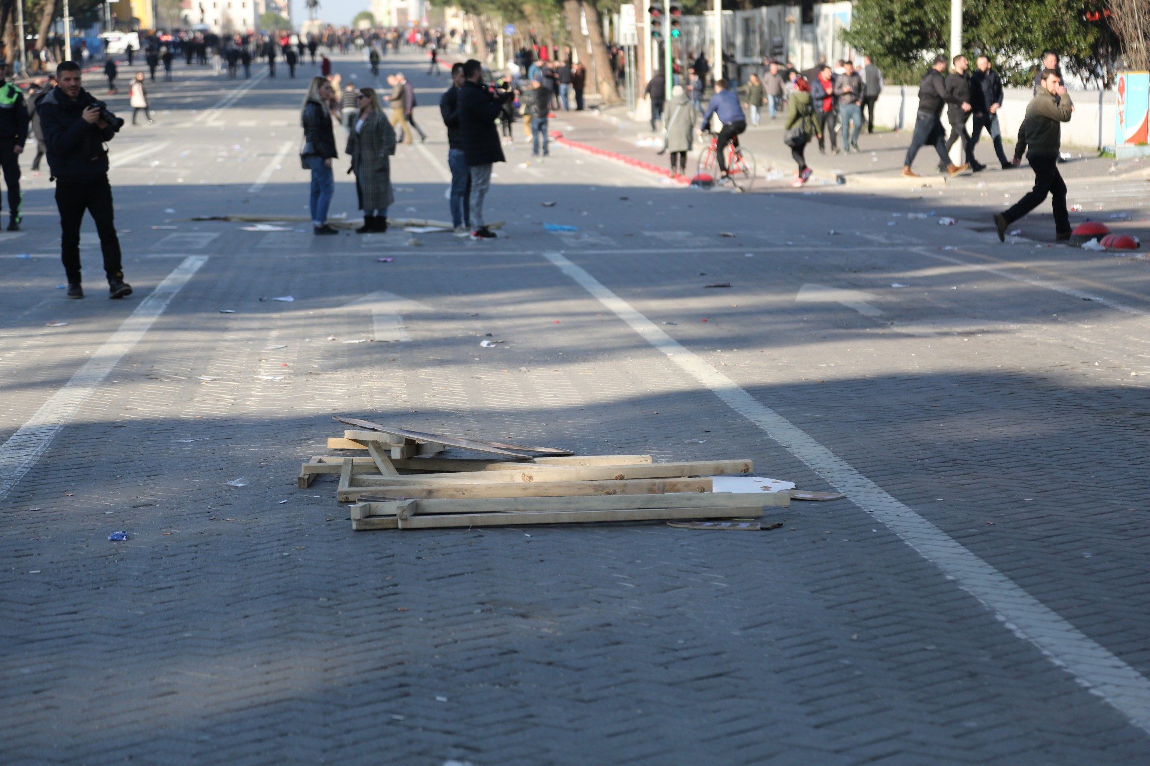 Në vend të fjalimeve që po mbanin drejtuesit e opozitës, duket se protestuesit kanë shijuar birrat dhe pije të ndryshme alkoolike, që sikurse faktohet edhe nga këto foto, kanaçet janë të hedhura në trotuare ose pranë pemëve në Bulevardin Dëshmorët e Kombit.