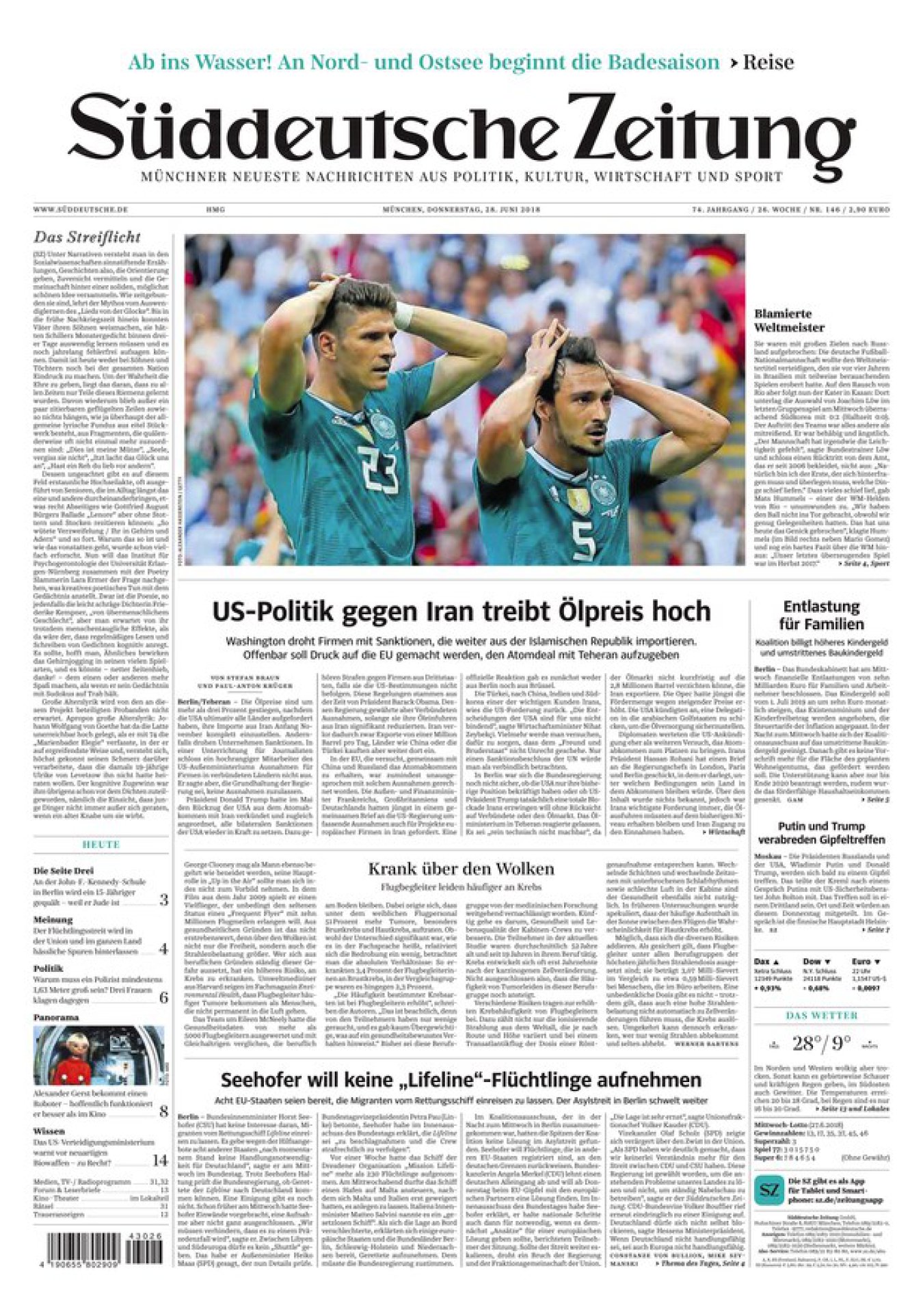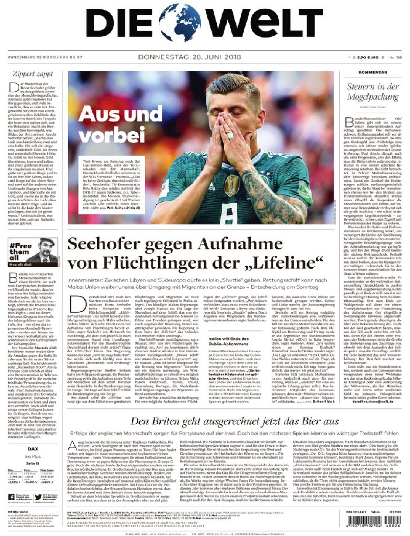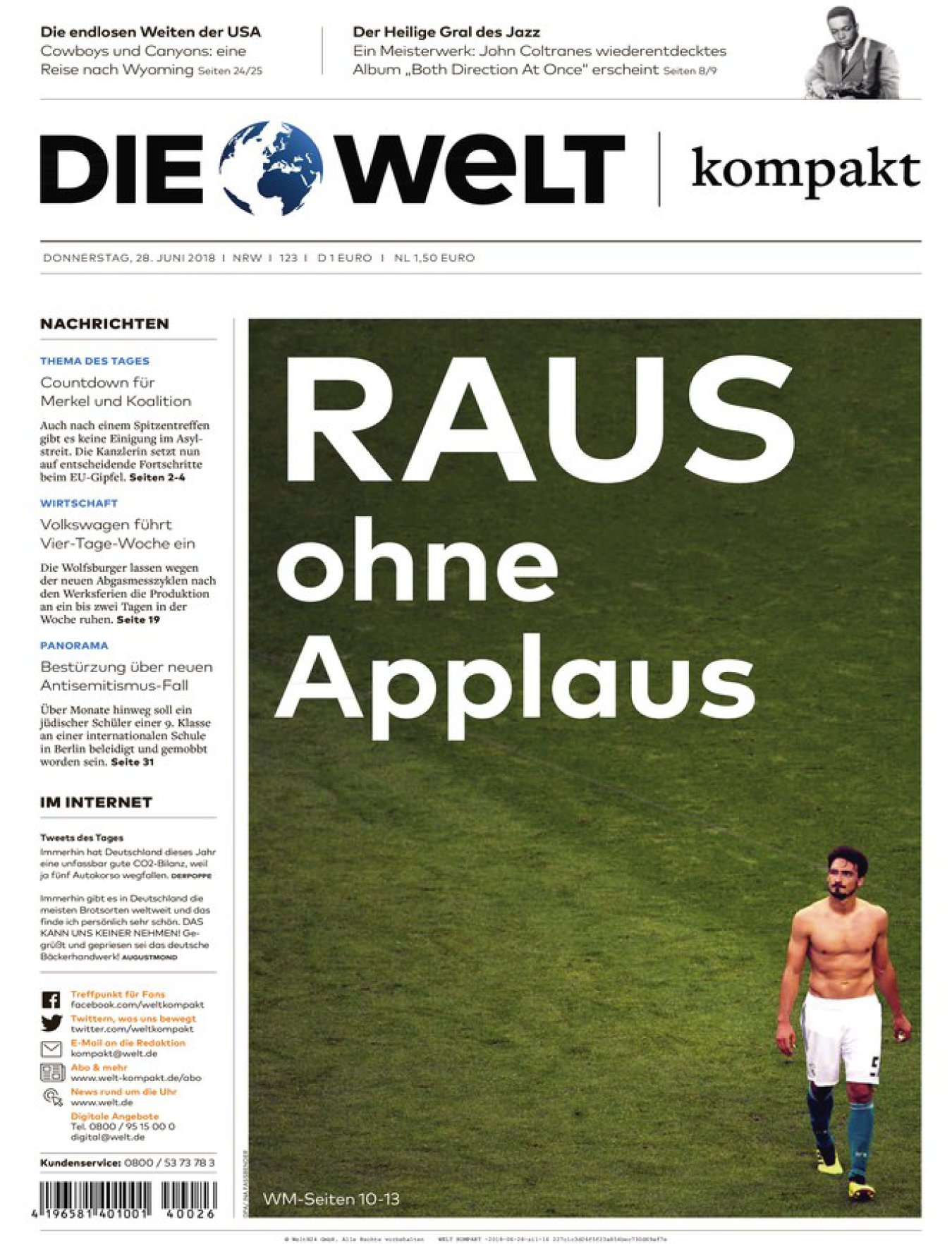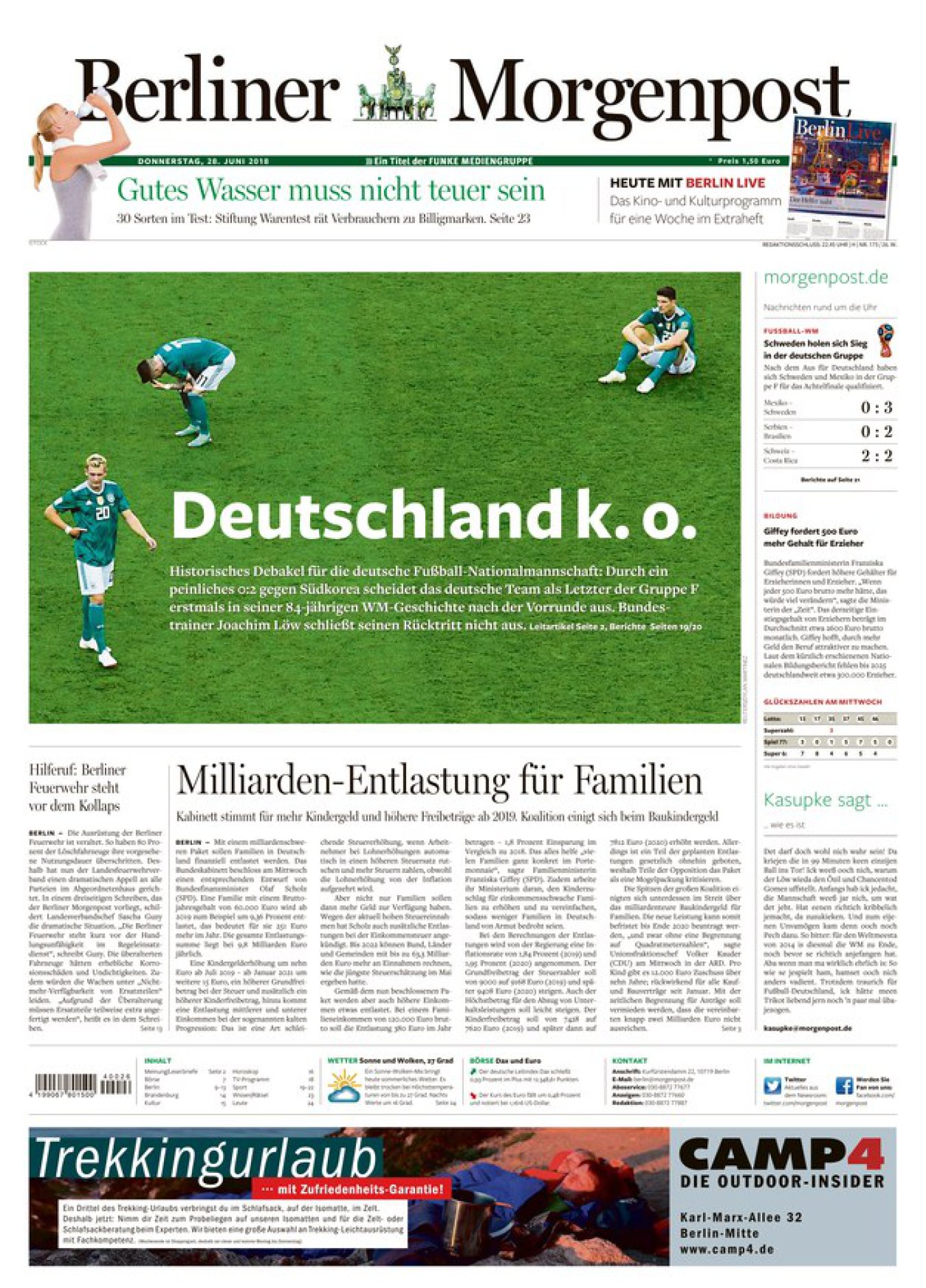 Ndërsa ‘Die Welt’ shkruan: Mbaroi. Jashtë Botërorit pa duartrokitje. Akoma më shkurt i bie ‘Berliner Morgenpost’ që publikon artikullin me titullin; ‘Gjermania Knocked Out’. Në Mynih, ‘Sudddeutsche Zeitung’ shkon deri aty sa në artikullin e saj flet për një skuadër kampione të botës që bëhet qesharake, ndërsa për TZ, eliminimi i Gjermanisë është një makth botëror.