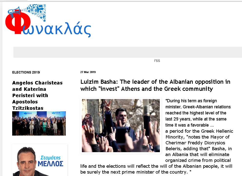 “Për komunitetin grek dhe për më tepër për Greqinë – Basha – i cili po udhëheq demonstratat në Tiranë është një aleat mjaft i dobishëm. Vetëm pak ditë më parë, në një takim me eurodeputetët, ai denoncoi shkeljet e të drejtave të anëtarëve të minoritetit grek nga regjimi i Edi Ramës. Lulzim Basha u tha eurodeputetëve se Rama ka shkatërruar qindra shtëpi dhe kisha të pakicës greke në Shqipëri”.