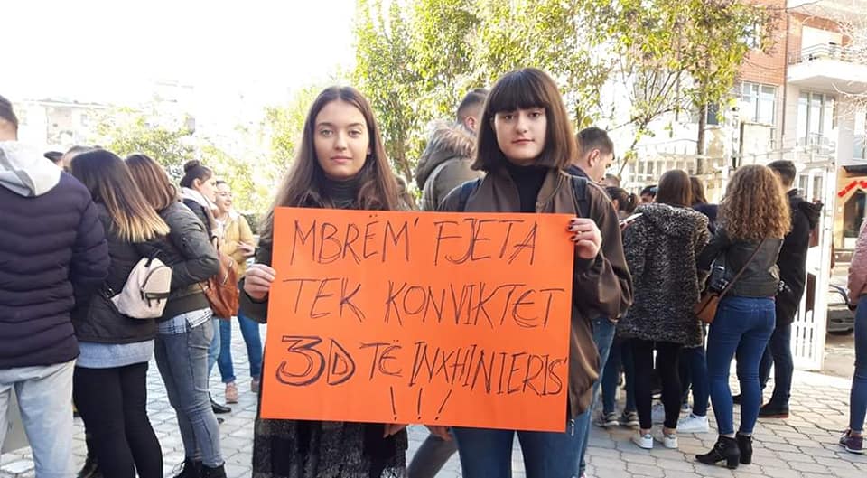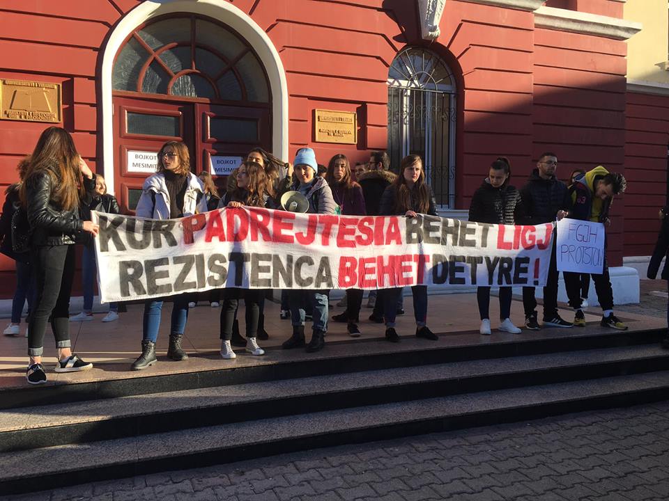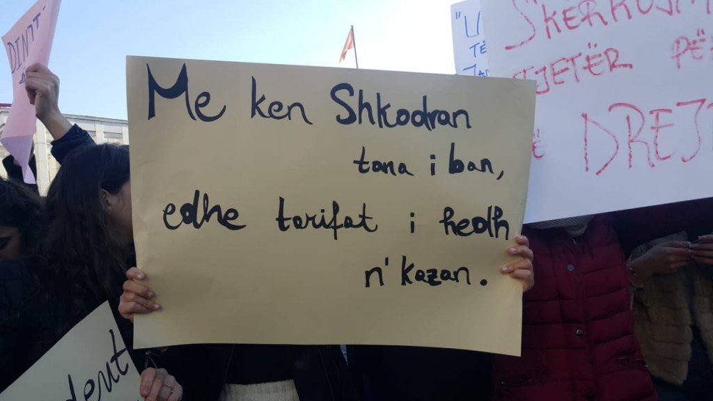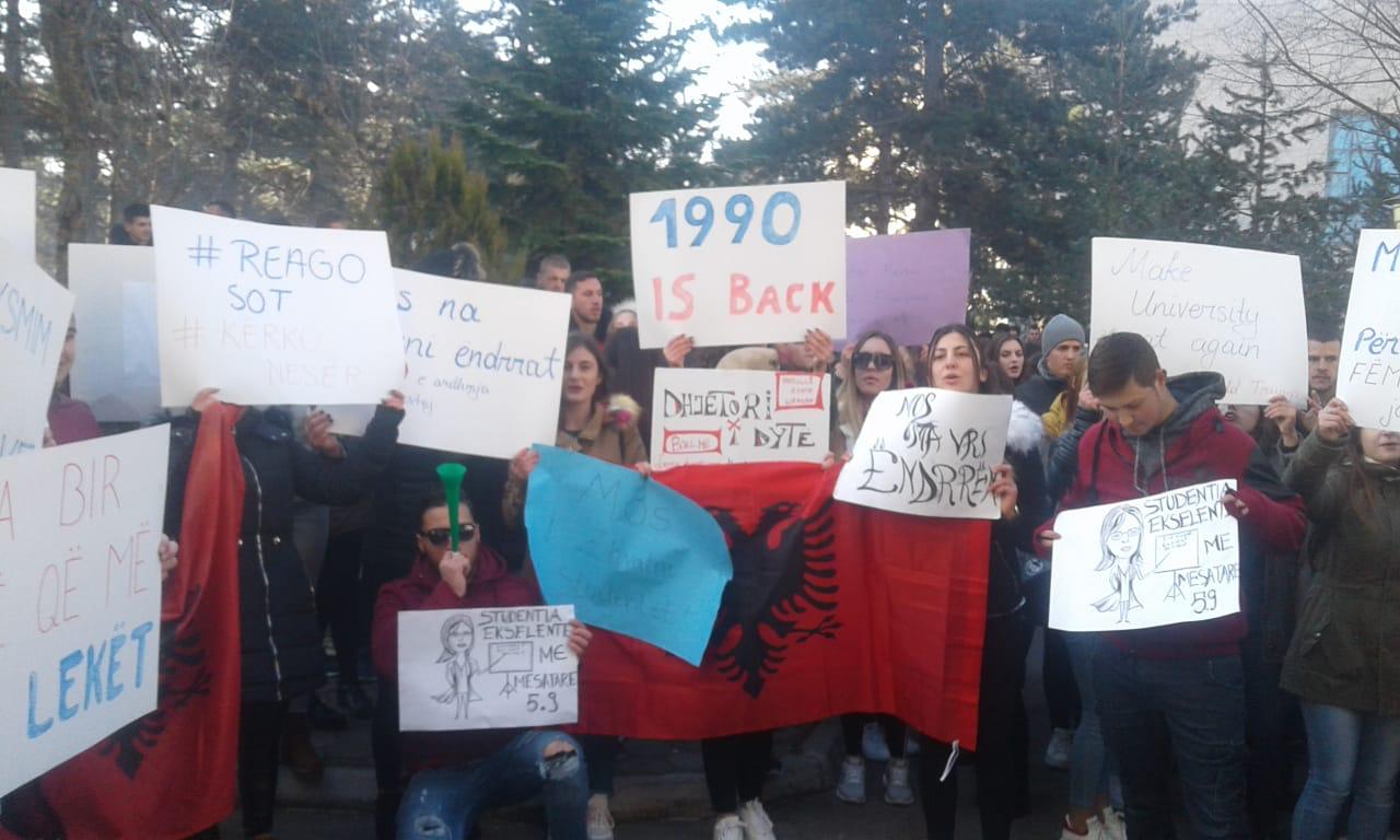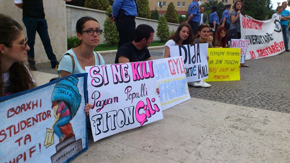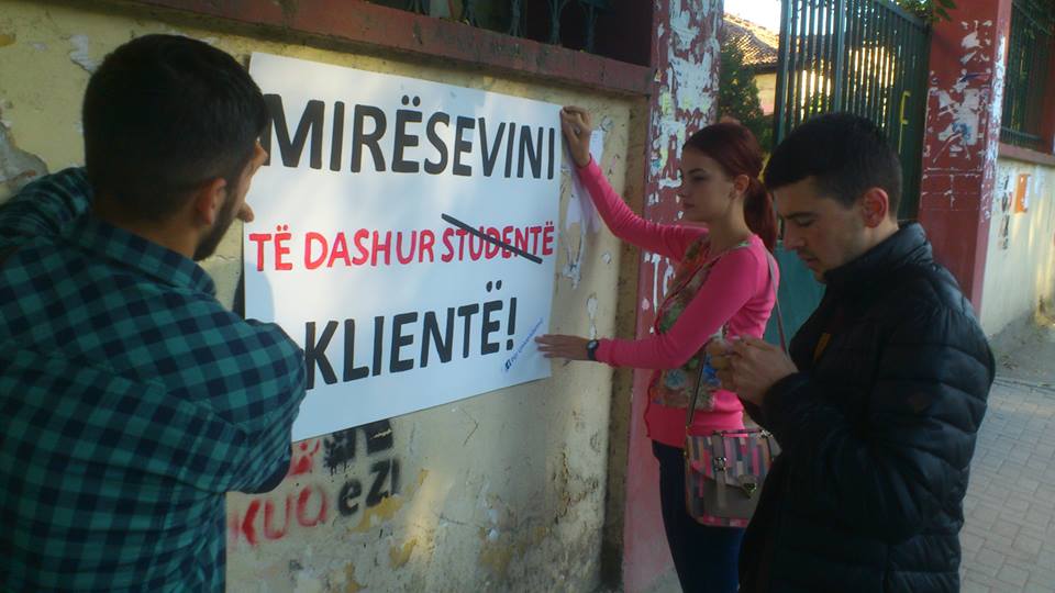 Mesazhet që studentet përcjellin përmes pankartave janë shumë të forta dhe ironizuese në lidhje me tarifat e studimit apo kushteve në auditore.