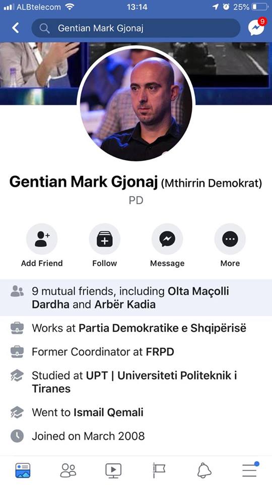 Kjo pasi në profilin e tij në Facebook, ai kërkon që t’i thërrasin “demokrat”, ndërsa ka postuar foto me të gjithë drejtuesit e lartë të PD-së, ish-kryeministrin Sali Berisha, kryetarin aktual Lulzim Basha, kreun e të rinjve të PD-së, Belind Këlliçi.(Lexo.al)