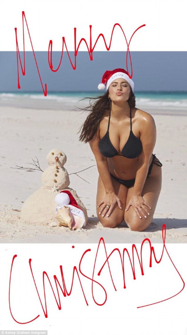 Ajo shquhet për format e saj të bëshme të cilat duket se e kanë bërë të famshme. Ashley Graham, modelja oversize ka uruar Krishtlindjen me një foto me bikini.