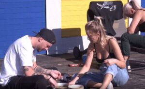 Ndërkohë në ato momente pranë saj kanë qenë modelja Beniada Nishani e cila ka bere te njejten gje, duke u zhveshur, si dhe aktori Donald Veshaj, i cili ka nisur ngacmimet ndaj saj.
