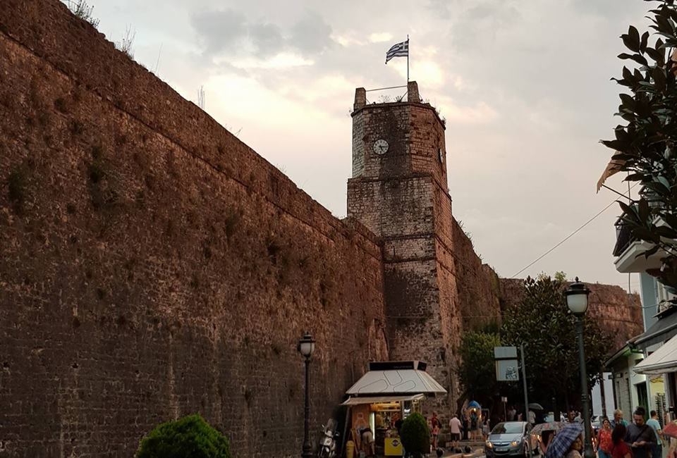 Bajraku i Junanit mbi karakoll te Janin’ kalase. Ose e thene ne shqipe me te llagarte: Flamuri grek mbi kullat e kalase se Janines.