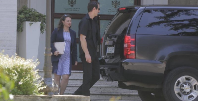 Nëse nuk do kishte aq shumë roje rreth saj, askush nuk do ta kuptonte se ajo zonjë e hijshme, e cila po blinte akullore, e veshur sport, bashkë me fëmijët e saj, është një person i rëndësishëm. Në fakt, ajo është Leyla Moses-Ones, e ngarkuara me punë e Shteteve të Bashkuara të Amerikës, e cila kryen funksionet e ambasadores derisa të vijë ambasadorja e emëruar tashmë, zonja Yuri Kim.