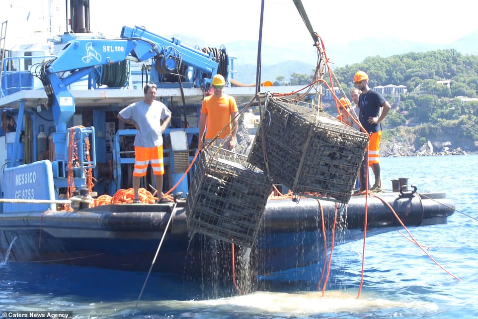 Çdo vjeshtë, Piero Lugano mbledh skuadrën e tij të zhytësve për të rikuperuar disa prej arkave që ka futur nën ujë, në brigjet e Sestri Levantes, Itali.
