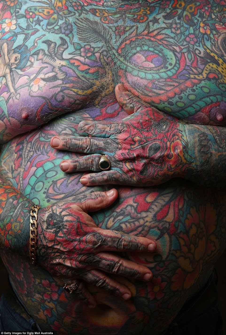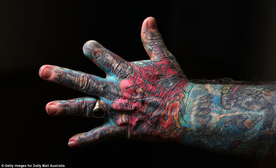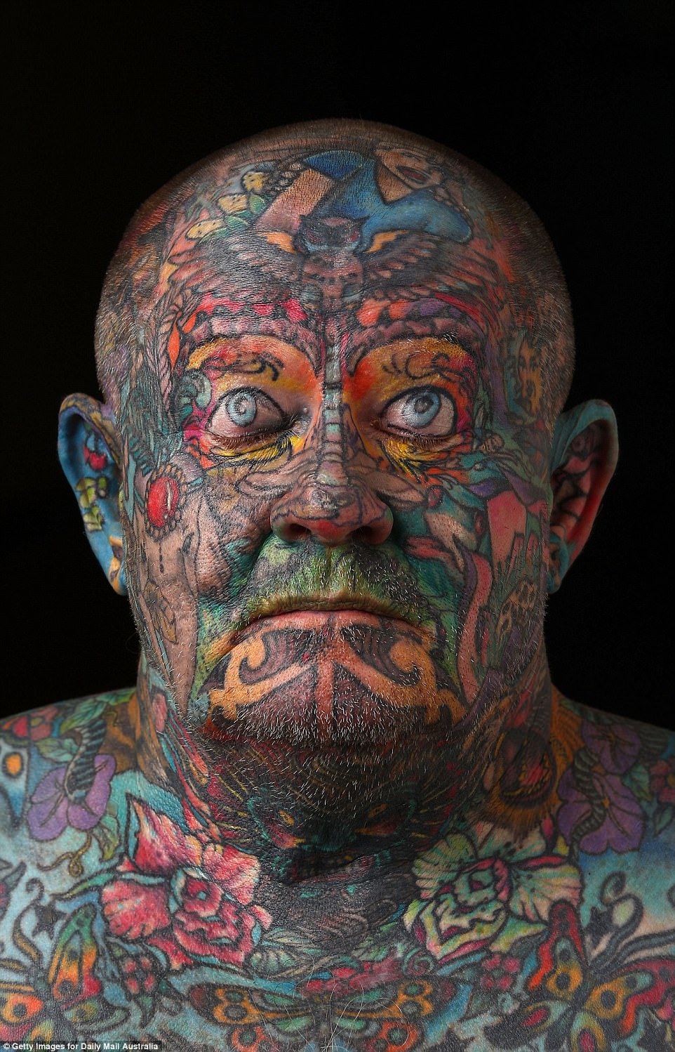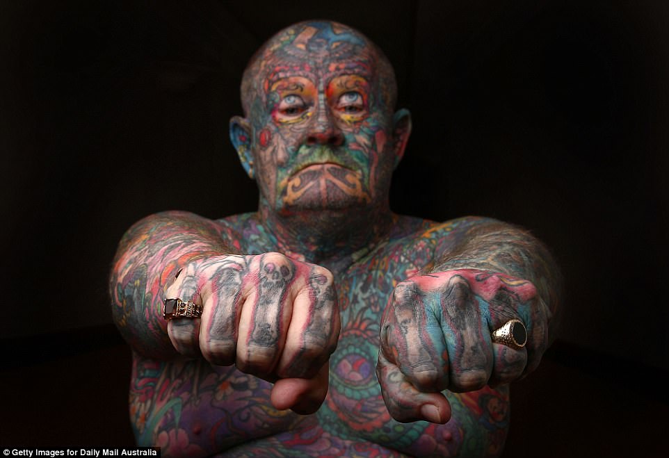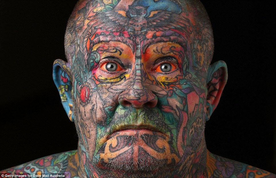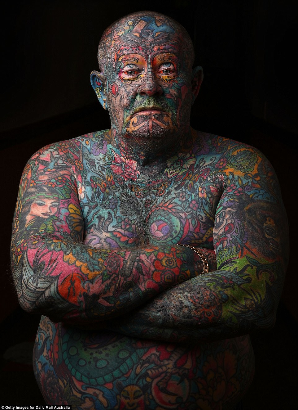 Një 60-vjeçar australian ka mbuluar të gjithë trupin e tij, përfshirë edhe të bardhën e syve, me tatuazhe.