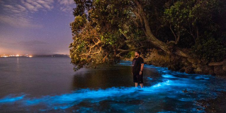 Një spektakël shkëlqyes. Ujërat përreth Aucland janë parë të shkelqejnë në blu.
