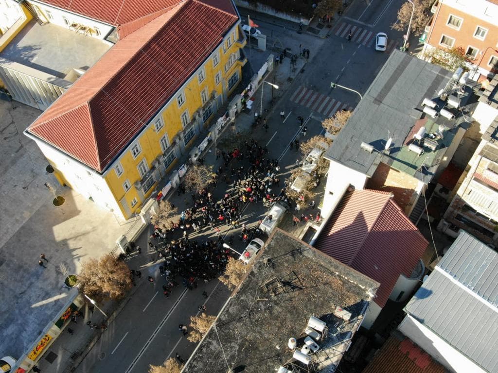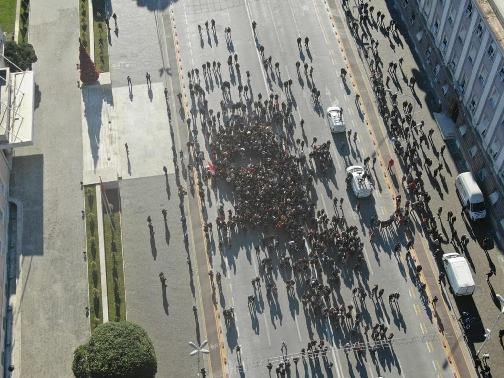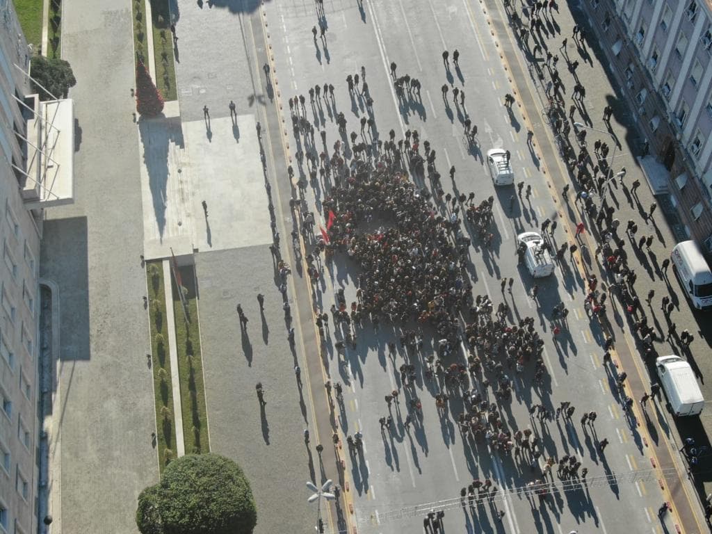 Javanews.al sjell pamje nga lart të protestës së studentëve. Siç duket, ndarja në dy grupe, ka sjelle edhe rënien e numrit të protestuesve