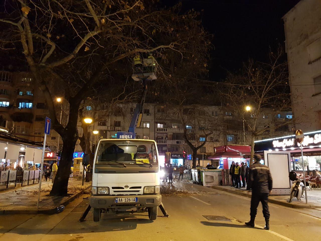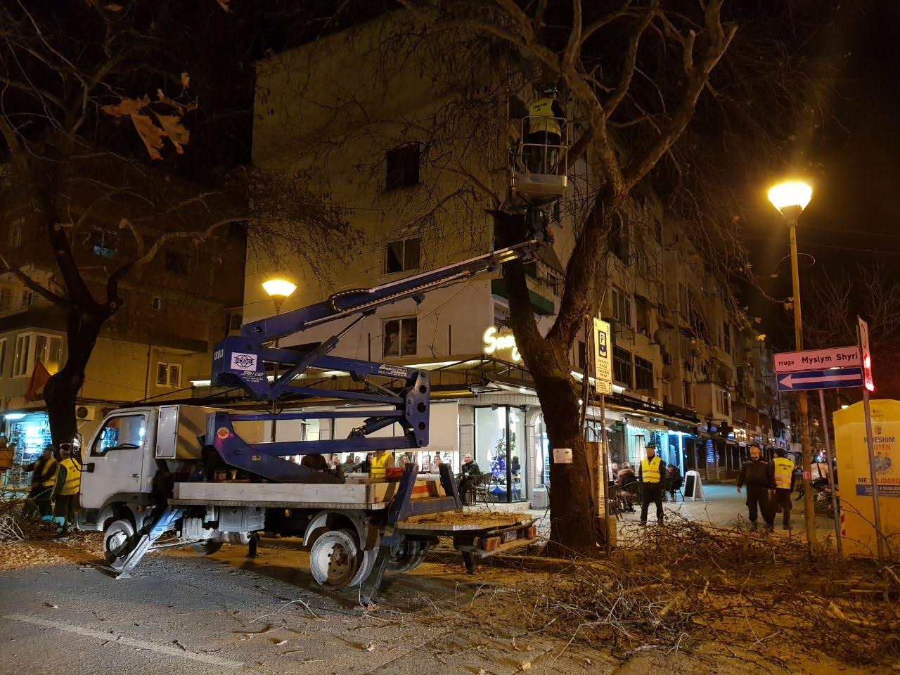 Punonjësit e Ndërmarrjes Nr. 1 të Qytetit, prej së hënën po punojnë gjatë orëve të mbrëmjes për heqjen e degëve të pemëve të cilat ishin kthyer në një rrezik për qytetarët dhe për automjetet të cilat parkojnë në këtë segment, si pasojë e mosvëmendjes për vite të tëra.