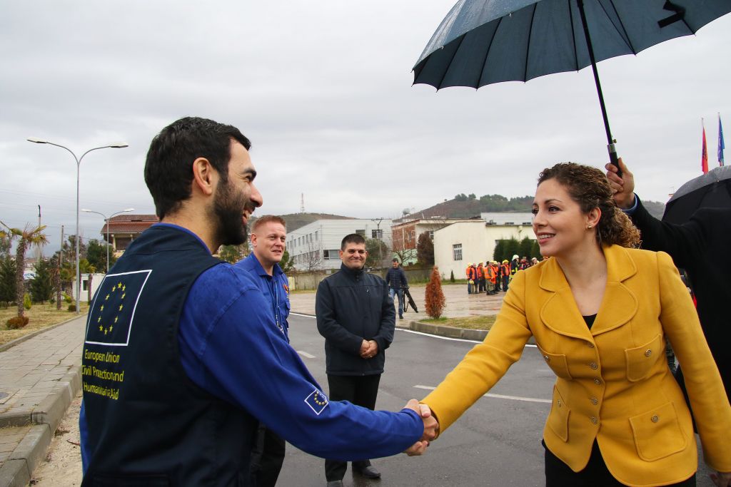 Në fjalën e saj, ambasadorja e Bashkimit Evropian në Shqipëri, Romana Vlahutin, vlerësoi investimet e qeverisë për parandalimin e përmbytjeve edhe më të mëdha, dhe falënderoi efektivët e angazhuar në zonat e prekura. “Dëshiroj të falënderoj të gjithë ju për këto arritje që janë bërë tashmë edhe përsa i përket parandalimit të rezultateve negative që sjellin përmbytjet sepse ajo që kemi parë është që Shqipëria është më mirë e përgatitur se më parë, kjo edhe në sajë të investimeve që janë bërë në lumin Vjosë. Dëshiroj t’ju falënderoj ju që jeni këtu përpara nesh për punën e shkëlqyer që keni bërë sepse ju keni qenë atje gjatë gjithë kohës me të gjithë ata njerëz që kanë pasur këto probleme dhe që kanë përjetuar fatkeqësitë dhe duke qenë atje ju iu keni dhënë atyre shpresë”- tha ambasadorja Vlahutin, e cila premtoi në të ardhmen asistencë më të mirë, më të shpejtë dhe më të organizuar, nga BE.