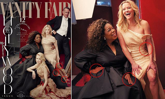 Në foto dallohet Oprah me tre duar si edhe Reese Witherspoon me tre këmbë. Duket se vetë Oprah ka parë anën komike të gabimit, duke e ironizuar atë në “twitter”.