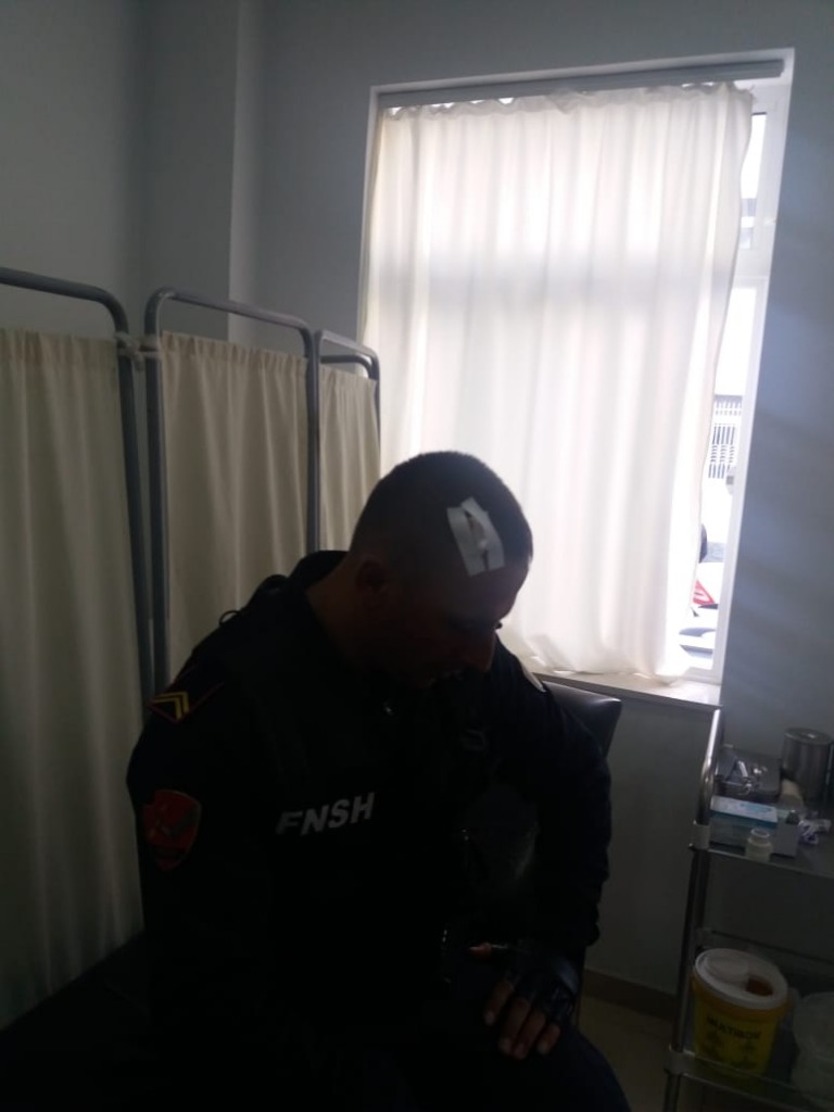 Për pasojë u plagos në kokë një punonjës policie i FNSH-së, i cili po merr ndihmë mjekësore në Spitalin Rajonal Fier