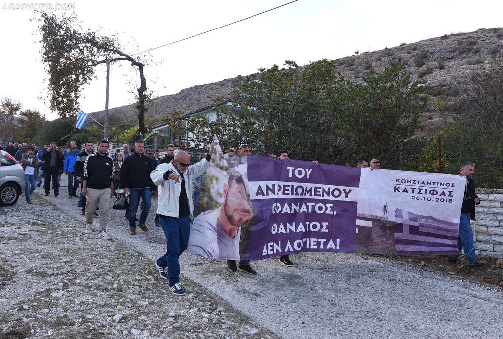 Ekstremistri i armatosur Kacifas i vrarë në Shqipëri, gjate nje perballje me arme me forcat RENEA, është përcjellë për në banesën e fundit si hero. Në ceremoni mernin pjesë edhe deputetë shqiptarë, si ai i PBDNJ-së, Vangjel Dule dhe deputeti i LSI-së, Vangjel Tavo. Pavarësisht thirrjeve raciste të disa simpatizantëve të “Agimit të Artë”, situata ka qenë e qet