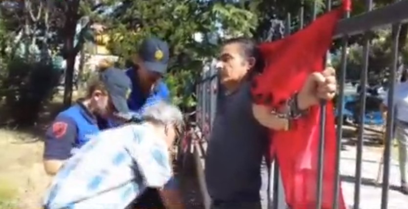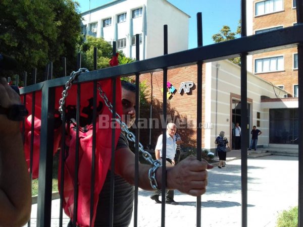 Një ish-i përndjekur politik është lidhur me zinxhirë pranë zyrave të ATP-së, për shkak se nuk ka marrë pagesat e dëmshpërblimit për vitet e burgut.