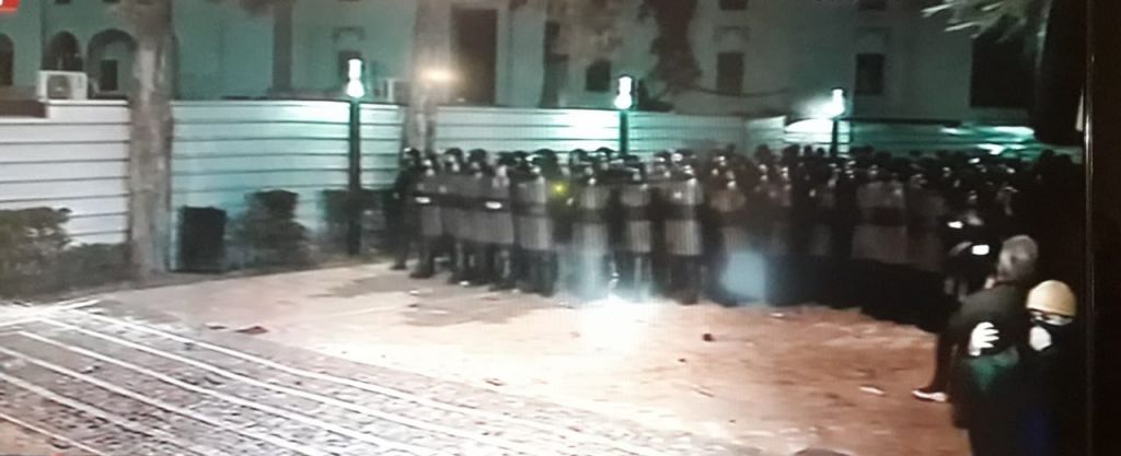Ka degjeneruar në dhunë protesta e thirrur nga opozita para Kuvendit. Drejt institucionit janë hedhur bomba molotov, gurë dhe kapsolla. Nga ana tjetër, policia ka nisur ofensivën me gaz lotsjellës. Hyrja e parlamentit është e mbuluar me re tymi. Protestuesit janë distancuar, disa metra më larg.