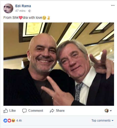 Edi Rama ka postuar para disa minutash një foto të tij së bashku me aktorin e humorit Zef Deda nën dixhiturën “Me Dashuri nga Shkodra”.